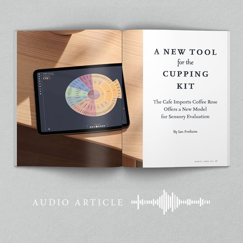 Presenting: "A New Tool for the Cupping Kit: The Cafe Imports Coffee Rose Offers a New Model for Sensory Evaluation" by Ian Fretheim. This article originally appeared in Roast magazine's March/April 2023 issue. Read the article here.