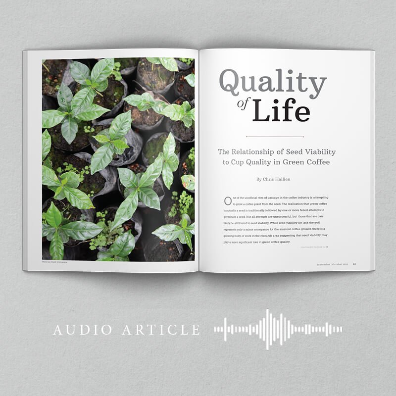 Presenting: "Quality of Life: The Relationship of Seed Viability to Cup Quality in Green Coffee" by Chris Hallien. This article originally appeared in Roast magazine's September/October 2019 issue.